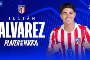体育资讯4月9日讯 欧冠1/4决赛首回合,马竞2-0战胜巴萨。阿尔瓦雷斯赛后被评为全场最佳球员。